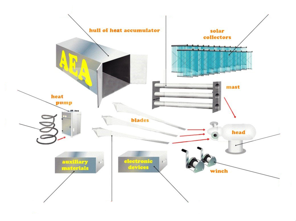 Depending on the resources of RES and the intended mode of consumption, the system is completed with RES converters with the corresponding geometry and power. Delivery is carried out in three 40-foot containers, one of which will be used in the heat accumulator system.